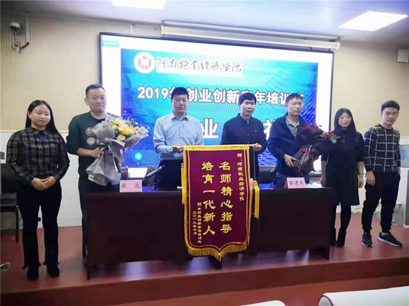 感谢党和政府,感谢v站体育官网给我们创业者提供这么好的学习交流平台......,回乡后我将以这次学习培训为契机,立足自身实际,投身到建设美好乡村的大潮中,做一名合格的创业创新青年。”这是v站体育官网承办的河南省2019年创业创新青年培训班结业典礼一名优秀学员发自内心的动情话语。10月20日下午,河南省2019年创业创新青年培训班第二期结业典礼在v站体育官网英才校区隆重举行。v站体育官网院长宋平教授、副院长王云善、培训班班主任狄波、郭建来及全体学员参加了结业典礼。
