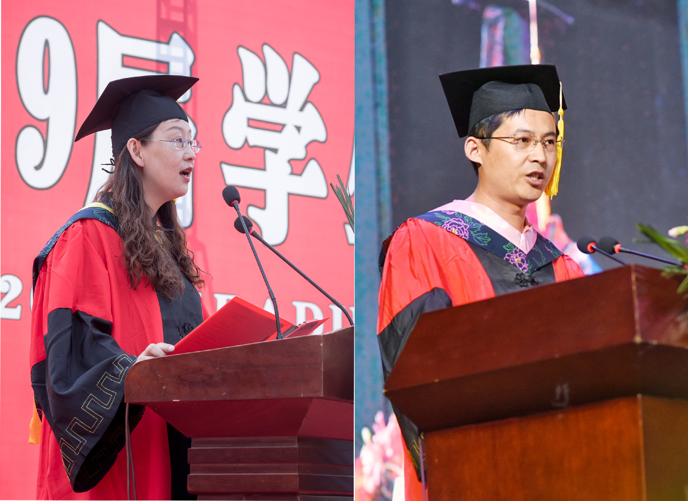 动物医学院车旗赢和物流电商学院韩浩杰两位同学分别作为毕业生代表发言。他们表示不论前方是风雨坎坷,还是阳光灿烂,都会砥砺奋进、勇敢前行,用自身知识和能力去服务社会、贡献国家。