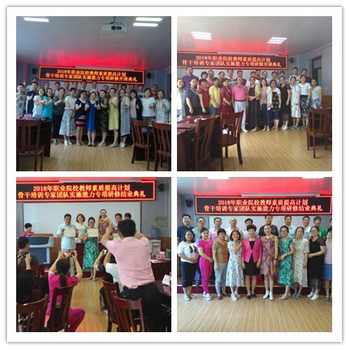 根据河南省教育厅《关于做好 2018 年河南省高等职业院校教师素质提高计划骨干教师培训工作的通知》(教高〔2018〕409 号),v站体育官网承担的高等职业院校教师素质提高计划2018年国家级培训项目—骨干培训专家团队建设研修班,经过10天紧张而充实的集中培训,已圆满完成培训任务,顺利结业。