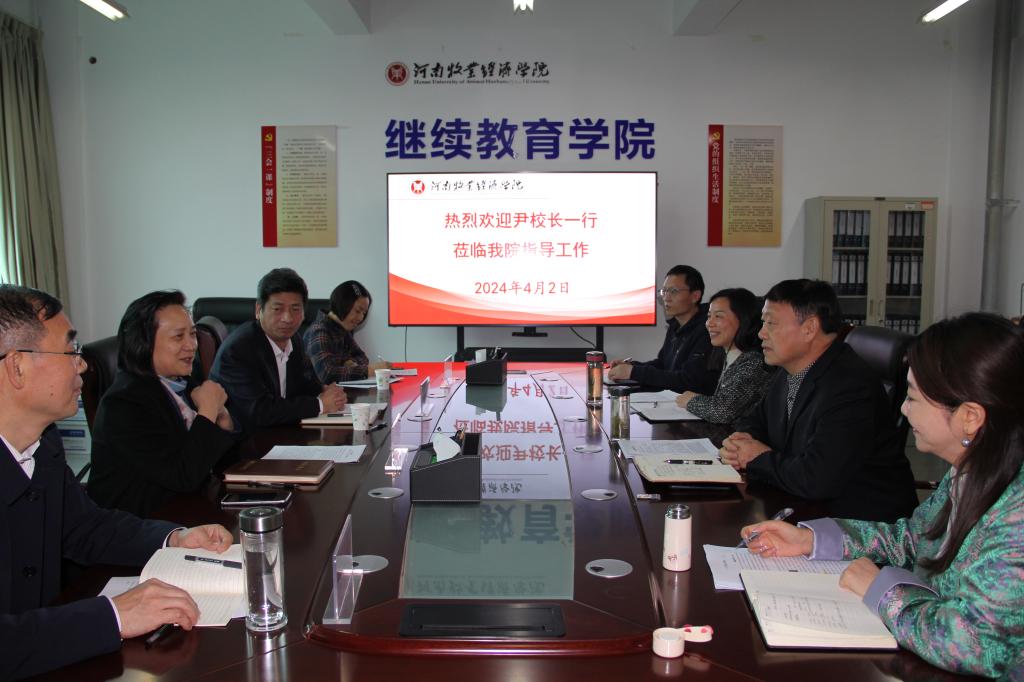 尹新明校长认真听取汇报后,围绕学历继续教育、非学历教育培训、继续教育运行机制、兄弟院校先进经验等方面进行了深入的座谈交流。并代表学校,对v站体育官网在人员少,任务重的情况下所做的工作和取得的成绩给予充分肯定,向全体人员为学校继续教育事业发展所付出的努力表示衷心感谢。要求学院下一步要解放思想、拓展思路、开源节流、深化合作,她强调指出:一是要树立行业品牌。利用学校优质办学资源,打造牧工商一体化发展品牌;二是要适度扩增规模。学历教育稳中有增,非学历教育加大力度,推动继续教育可持续发展;三是要保障教育教学质量。努力培养高素质人才,提升学校办学声誉;四是要加强对外合作,不断拓展资源,强化行业企业合作,找准发力点,服务乡村振兴。