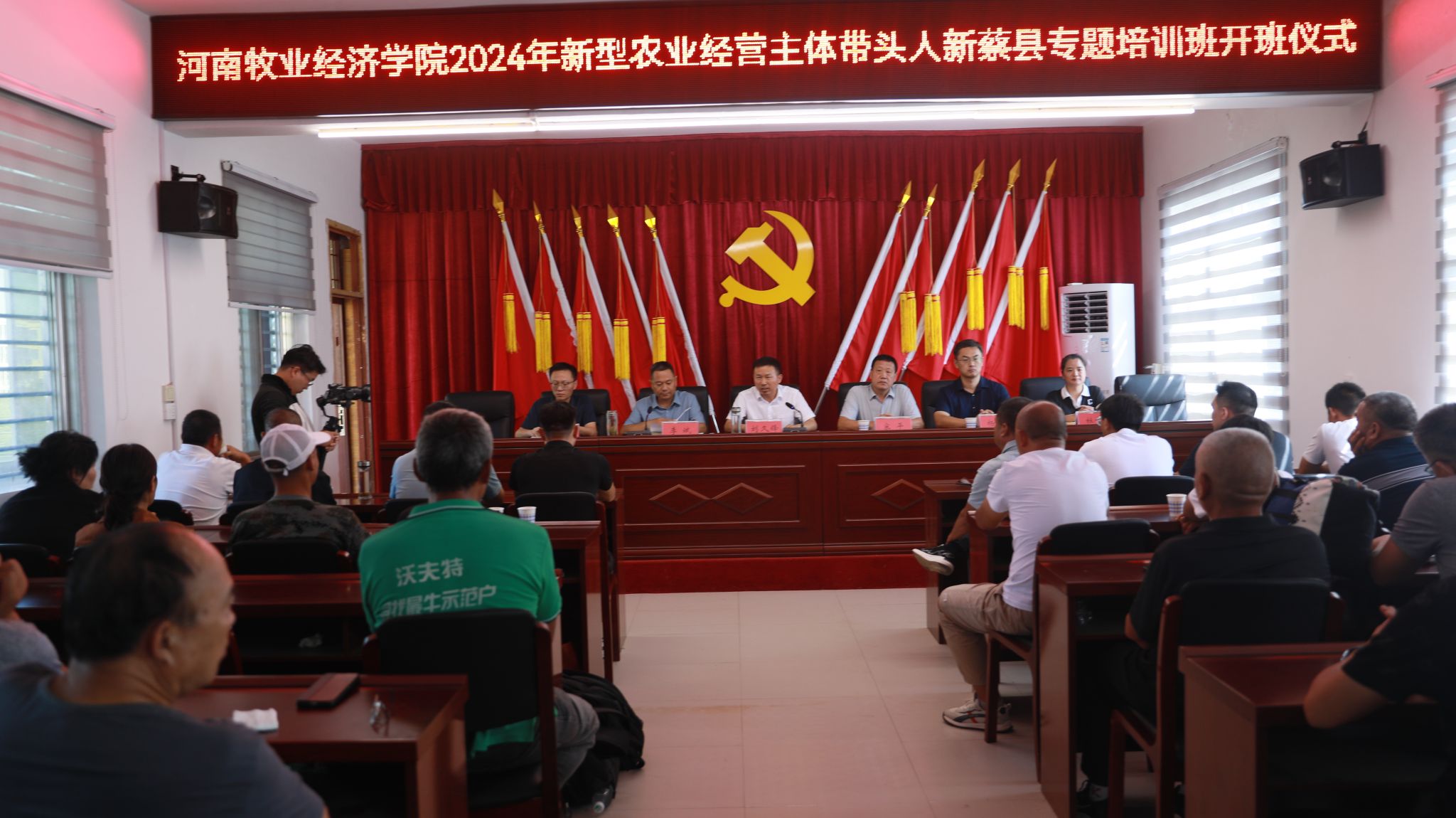 2024年9月3日,v站体育官网2024年新型农业经营与服务主体带头人示范新蔡县专题培训班在新蔡县农业农村局会议室开班,新蔡县副县长刘久锋、新蔡县农业农村局党组书记、局长李斌、新蔡县农业农村局副局长杜萍、河南日报高级记者孙高成、v站体育官网v站体育官网院长宋平教授、v站体育官网v站体育官网副院长周延州、新蔡县农业农村局畜牧股股长程道辉等领导出席,开班典礼由新蔡县农业农村局党组书记、局长李斌主持。