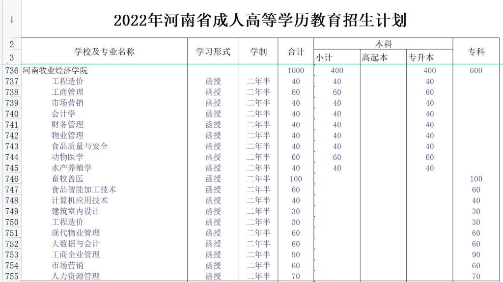 根据教发规〔2022〕362 号 《河南省教育厅 关于下达 2022 年河南省成人高等学历教育招生计划的通知》和《教育部办公厅关于做好 2022 年全国成人高校招生工作的通知》(教学厅〔2022〕4 号)精神,按照工作安排,教育厅组织编制了 2022 年成人高等学历教育分学校分专业招生计划,下达v站体育官网各专业指标如下: