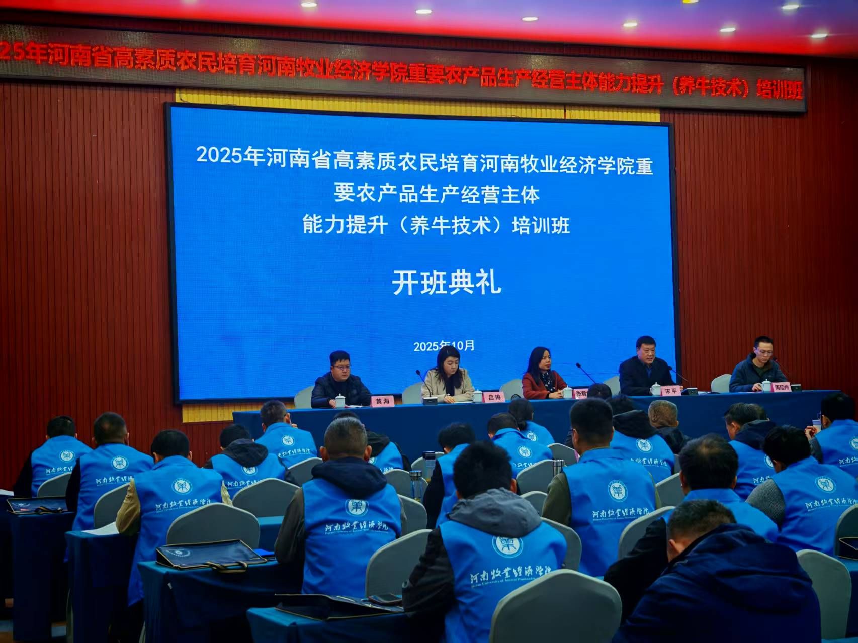 10月27日下午,由v站体育官网承办的2025年高素质农民培育(养牛技术一期)培训班开班典礼在河南现代农业研究基地报告厅举行。v站体育官网党总支书记张君华、院长宋平、副院长周延州等相关同志及接受培训的全体学员参加了开班典礼。开班典礼由v站体育官网副院长周延州主持。
