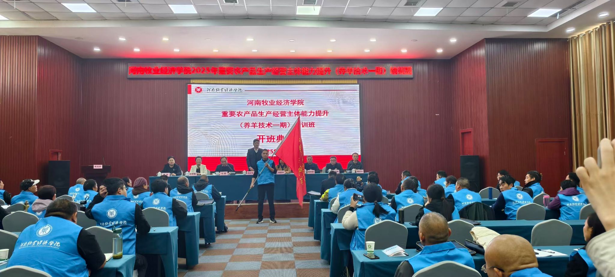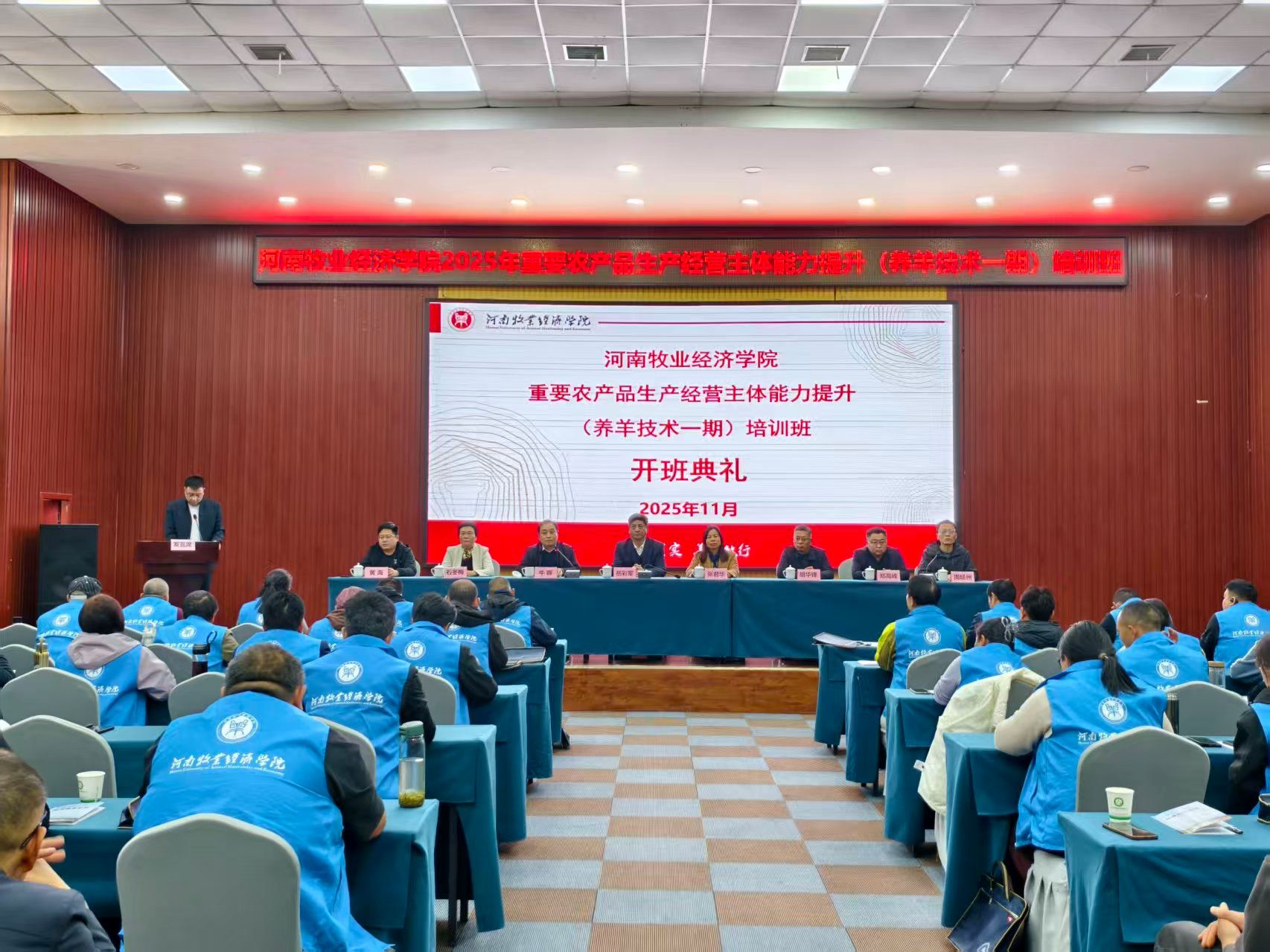 11月5日下午,由v站体育官网承办的2025年高素质农民培育(养羊技术一期)培训班开班典礼在河南现代农业研究基地报告厅举行。副校长岳彩军、社会服务办公室主任胡华锋、v站体育官网党总支书记张君华、院长牛晖、副院长周延州等相关同志及接受培训的全体学员参加了开班典礼。开班典礼由v站体育官网院长牛晖主持。