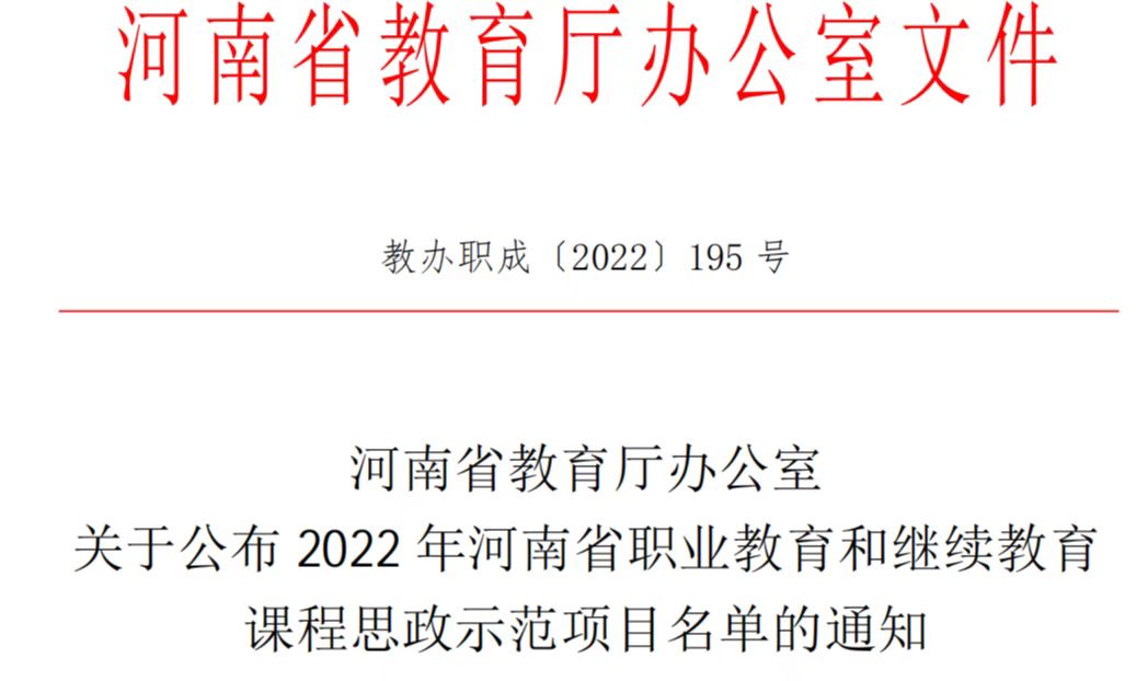据悉,为贯彻《教育部办公厅关于开展课程思政示范项目建设工作的通知》(教高厅函〔2021〕11号)精神,河南省教育厅下发了《关于开展职业教育和继续教育课程思政示范项目建设工作的通知》(教职成〔2021〕98号),就我省全面落实立德树人根本任务,切实推进职业教育和继续教育课程思政教育教学工作,形成“校校有精品、门门有思政、课课有特色、人人重育人”的良好局面作出了详细部署安排。