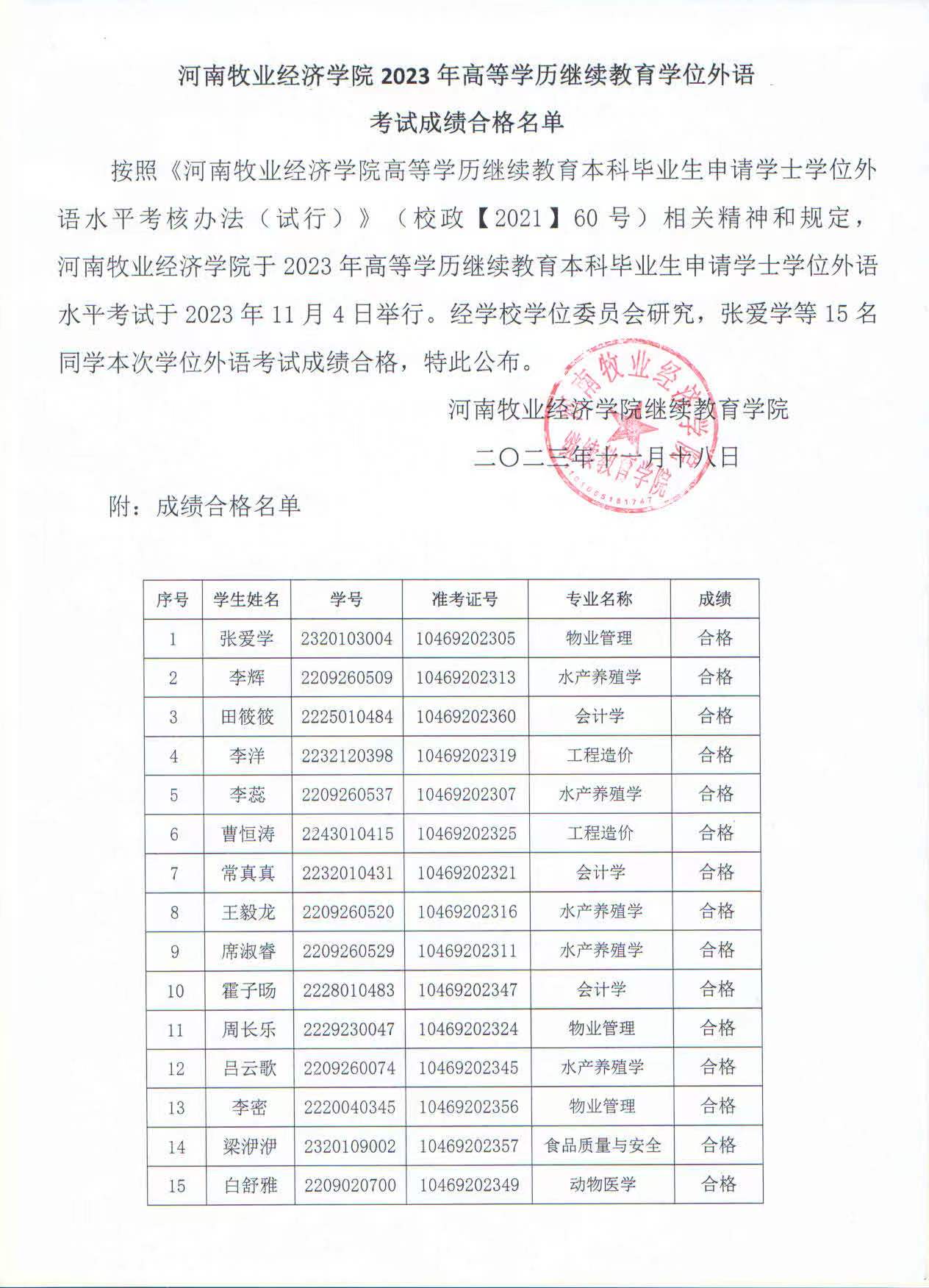 v站体育官网2023年高等学历继续教育学位外语考试成绩合格名单